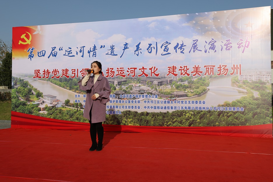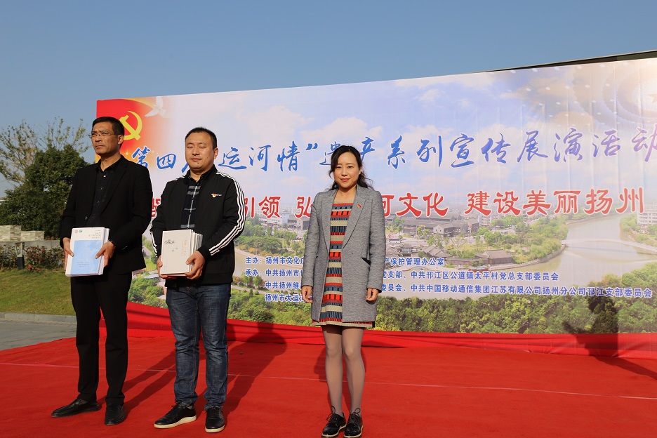 為充分發(fā)揮廣大市民在大運河遺產(chǎn)保護、傳承和利用中的重要作用,深入挖掘大運河的歷史、科學(xué)、文化價(jià)值,宣傳普及大運河遺產(chǎn)知識,11月8日下午,在蜀岡體育公園舉辦了以“堅持黨建引領(lǐng) 弘揚運河文化 建設美麗揚州”為主題的第四屆“運河情”遺產(chǎn)宣傳展演系列活動(dòng)。 本次活動(dòng)由揚州市文化廣電和旅游局、大運河遺產(chǎn)保護管理辦公室主辦,由中共揚州市世界遺產(chǎn)保護管理辦公室支部委員會(huì )、中共揚州市邗江區公道鎮太平村總支部委員會(huì )、中共揚州維揚發(fā)展投資有限公司支部委員會(huì )、中共中國移動(dòng)通信集團江蘇有限公司揚州分公司邗江支部委員會(huì )、揚州市大運河保護志愿者總隊聯(lián)合承辦。 活動(dòng)共有四個(gè)環(huán)節:首先,由專(zhuān)業(yè)人士解讀大運河文化帶建設相關(guān)政策和規劃。