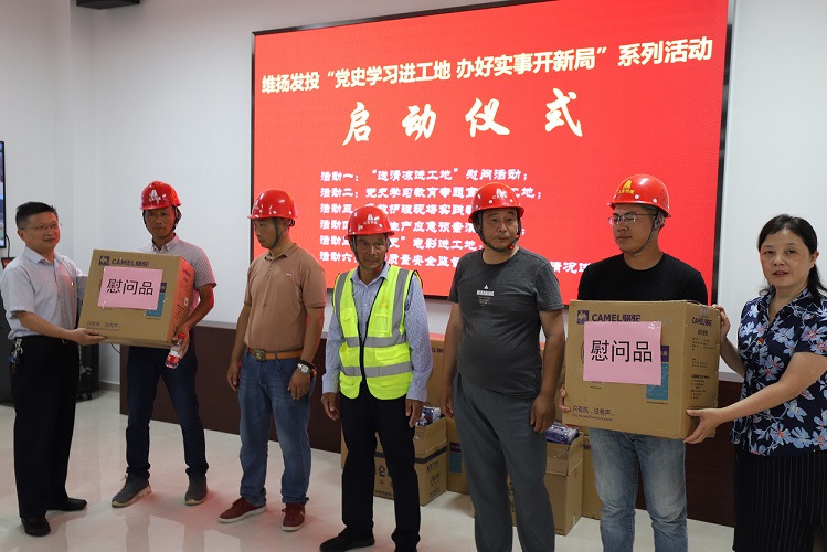 本次活動(dòng)共有五項議程:“黨史學(xué)習進(jìn)工地辦好實(shí)事開(kāi)新局”系列活動(dòng)啟動(dòng)儀式;進(jìn)行維揚發(fā)投現場(chǎng)教學(xué)點(diǎn)揭牌儀式;進(jìn)行泰和佳園項目質(zhì)量安全監督員聘任儀式;進(jìn)行維揚發(fā)投志愿者服務(wù)隊授旗儀式;開(kāi)展“送清涼進(jìn)工地”慰問(wèn)活動(dòng)。